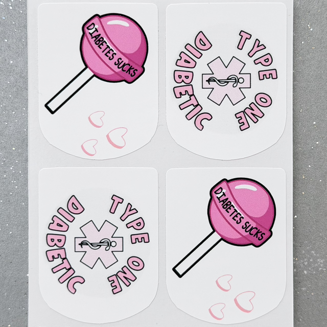 Diabetes Sucks Pink Lollipop Stickers (set of 4)